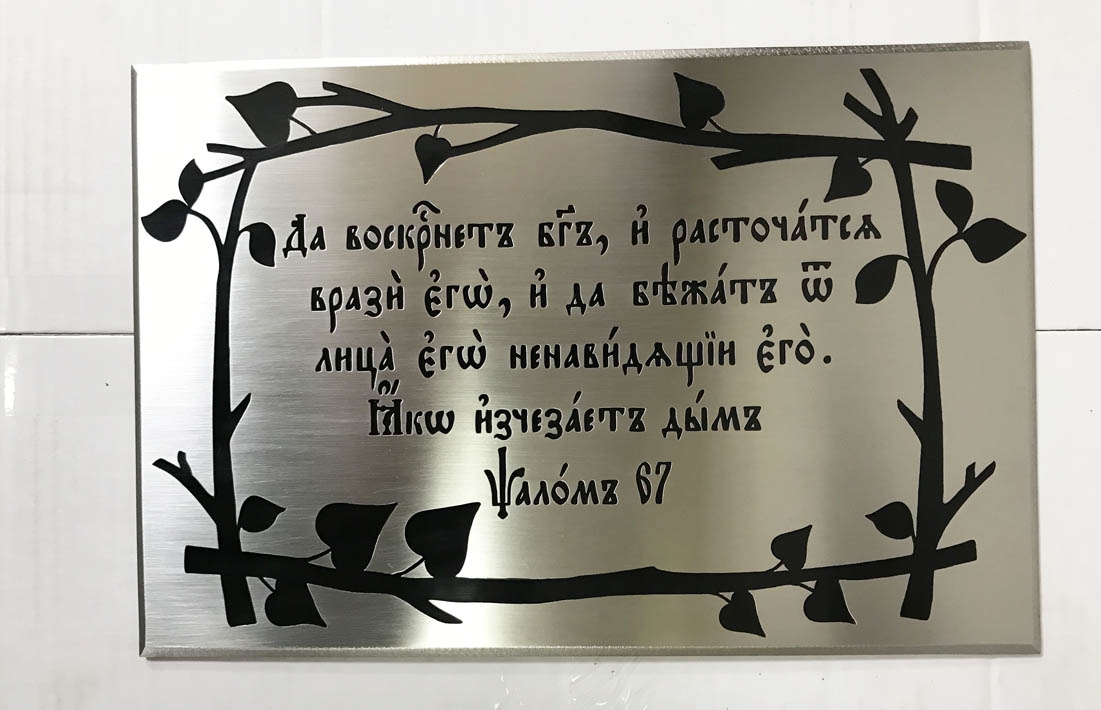 - Выгравированные буквы заливаются черной эмалевой краской;