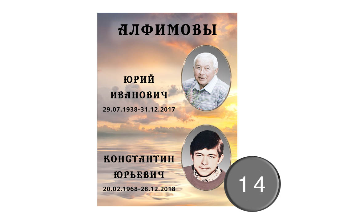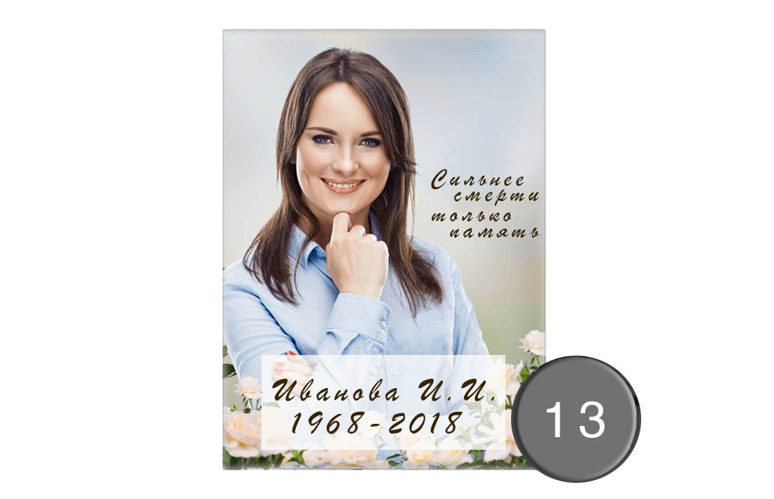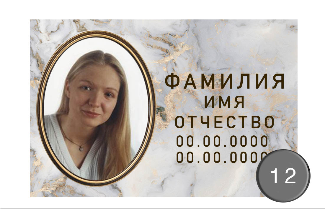 Керамический овал на памятник Керамический овал на памятник – это один из самых популярных вариантов мемориальных портретов, формирующий особую выразительную эстетику памятника. Мы предлагаем вам широкий выбор шаблонов, позволяющих подобрать оформление под собственные вкусовые предпочтения. В качестве материала используется фирменная итальянская керамика, обеспечивающая долговременную сохранность цветов и деталей изображения.